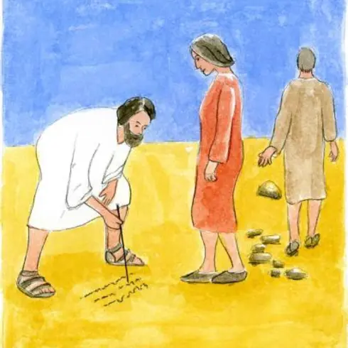 Jesus schrieb nur mit dem Finger auf die Erde.