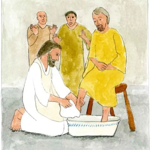 Gründonnerstag - Jesus wäscht bei seinen Freunden die Füße.