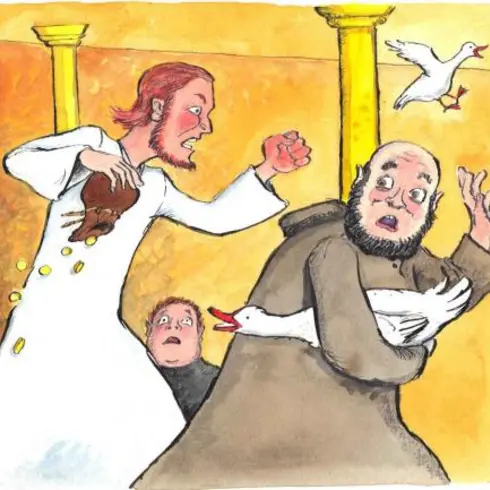 Jesus jagte die Tiere und die Verkäufer aus dem Tempel raus.